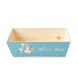 Bedrukte mandjes Op zoek naar een originele manier om producten of cadeautjes te verpakken? Ontdek onze houten mandjes met bedrukking! Perfect als lege geschenkmand voor cadeaus of relatiegeschenken, of als decoratieve verpakking voor in winkels. Onze houten mandjes zijn verkrijgbaar in verschillende formaten en kunnen al in kleine aantallen besteld worden. Met opties voor logo’s, teksten of andere designs maak je elk houten mandje uniek en passend voor elke gelegenheid. Maak gebruik van de filters om snel een geschikt mandje te vinden. Kun je niet vinden wat je zoekt? Wij kunnen alle plywood mandjes naar wens bedrukken. Neem contact met ons op voor maatwerk.