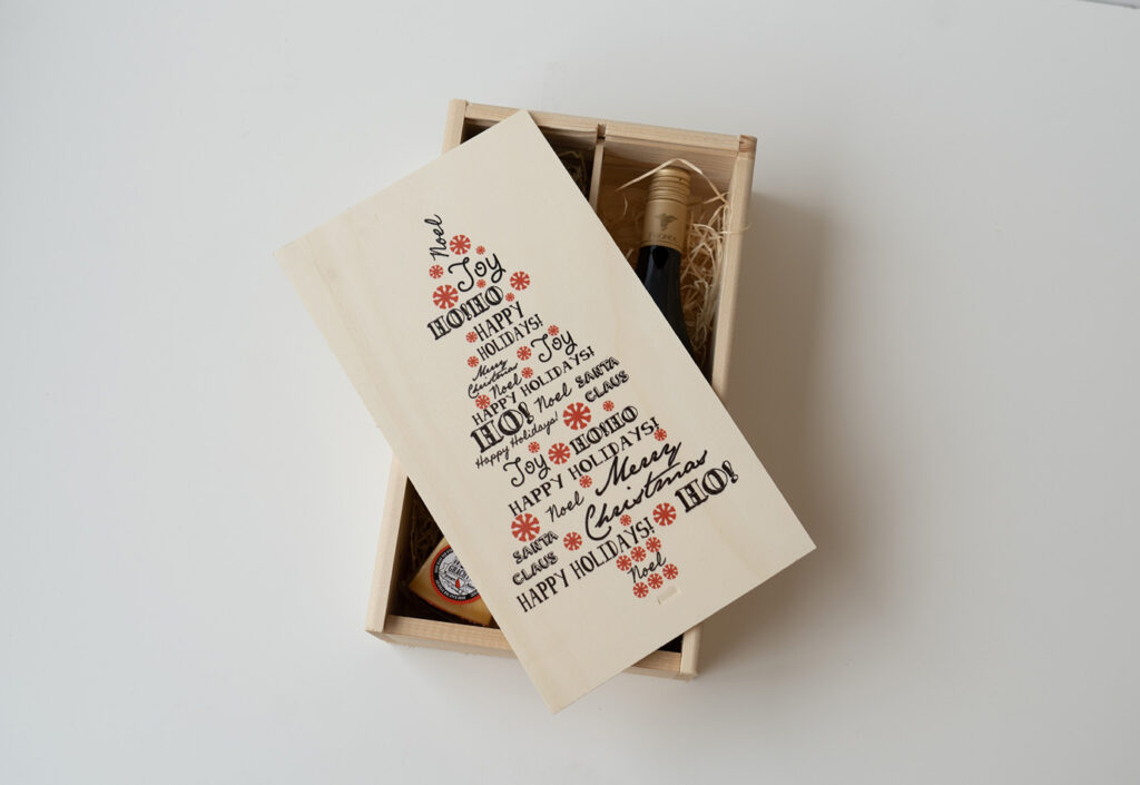 2 vaks wijnkist met bedrukt deksel kerst 1