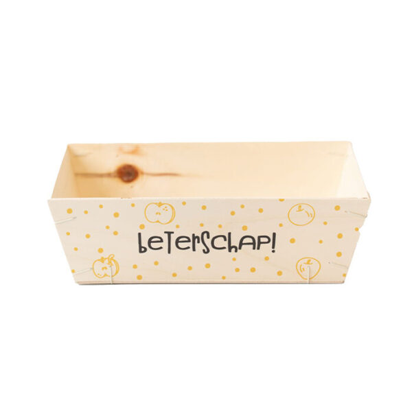 Onze plywood mandjes zijn stevig en laten zich goed bedrukken. Dat betekent dat we deze mandjes volledig kunnen personaliseren! Heb je interesse in geschenkmandjes met jouw logo erop of een tekst naar keuze? Of wil je misschien een deksel laten bedrukken? Dat kan, neem dan contact met ons op!