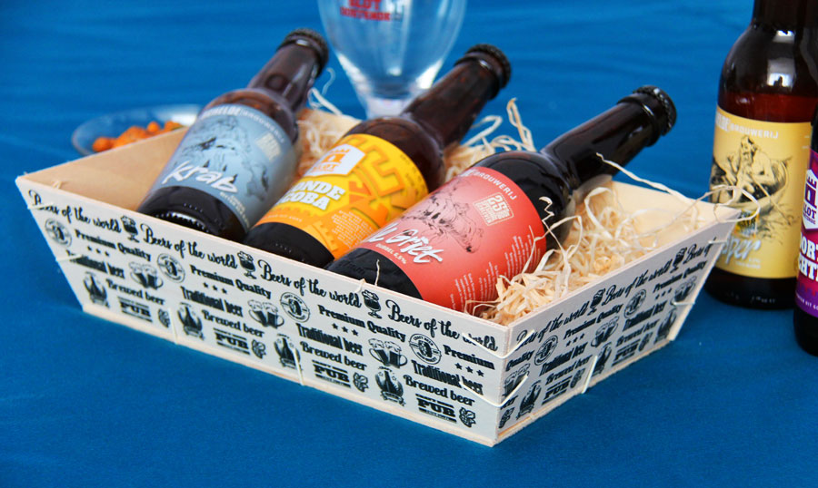 Ons bedrukte biermandje is beschikbaar in verschillende maten en is uitermate geschikt om mooie bierpakketjes in te creëren. Verpak eigen gebrouwen bieren of pak verschillende speciaalbiertjes in samen met een bierglas en wat heerlijke borrelnootjes. Vergeet het mandje niet op te vullen met houtwol en verpak het met ons mooie, transparante inpakfolie om jou cadeau compleet te maken.Gerelateerde producten