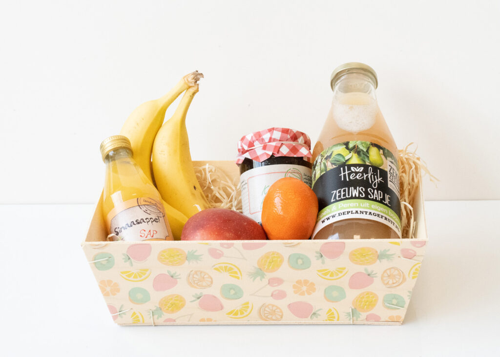 Iemand bedanken, opfleuren of verrassen? Met deze bedrukte mandjes geef je een origineel en leuk cadeau. Dit mandje kan gevuld worden met 3KG leuke of lekkere producten. Vul dit leuke fruitmandje met fruit of iets compleet anders zoals bier, wijn of een geurtje. Vergeet het mandje niet op te vullen met houtwol en verpak het met transparante inpakfolie om jouw cadeau compleet te maken. Succes gegarandeerd!Liever een gepersonaliseerd fruitmandje?