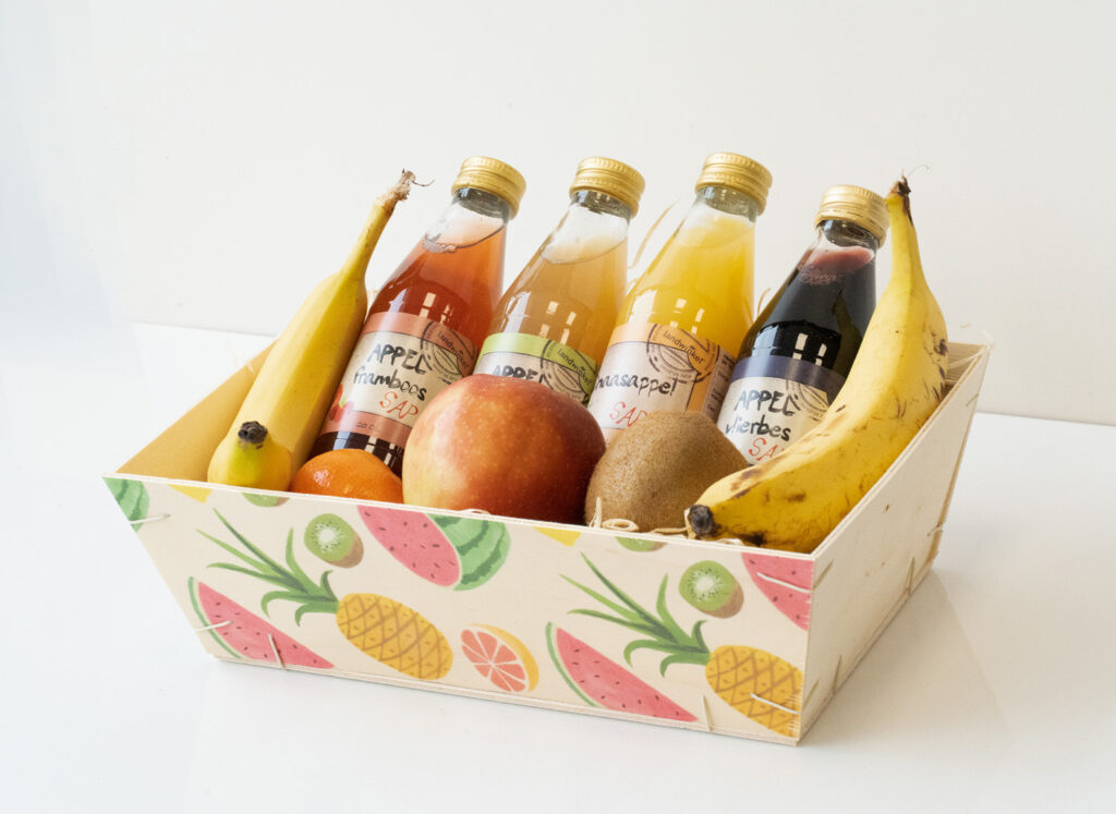 Dit vrolijke fruitmandje is een goede keuze voor iedere gelegenheid: om iemand te bedanken, beterschap te wensen of te feliciteren. Dit mandje is geschikt voor een inhoud van ca. 3KG. Dat betekent dat je hem kunt vullen met fruit en sapjes of met speciaalbiertjes, een wijntje, lekker chocola of iets naar keuze. Vul het geheel op met houtwol voor een mooie uitstraling en verpak het geheel in transparante folie. Succes gegarandeerd!Liever een gepersonaliseerd fruitmandje?