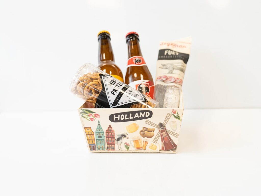 Maak de mandjes nog persoonlijker door een ontwerp te laten maken met je eigen logo. Zo krijgt de verpakking, helemaal naar jouw wens, een exclusieve uitstraling. Of het nu gaat om een logo, ontwerp of tekst, alles is mogelijk. Vergeet het mandje niet op te vullen met houtwol en verpak het met ons mooie, transparante inpakfolie om jou cadeau compleet te maken. Succes gegarandeerd!