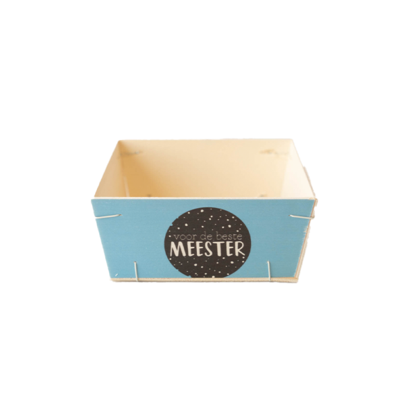 Op zoek naar een leuk cadeau voor de meester? Dit meestermandje is een leuke geschenkverpakking! Vul het mandje bijvoorbeeld met een biertje, wat lekkers of een mooie tekening. Vergeet het mandje niet op te vullen met houtwol en verpak het met inpakfolie om jouw cadeau compleet te maken. Succes gegarandeerd!