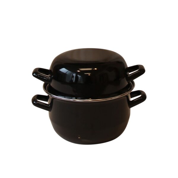 Deze pan heeft precies het juiste formaat voor een portie van 1 kilogram mosselen, ideaal voor één persoon. Dankzij het klassieke design en de stevige kwaliteit is hij niet alleen praktisch, maar ook een echte eyecatcher op tafel.