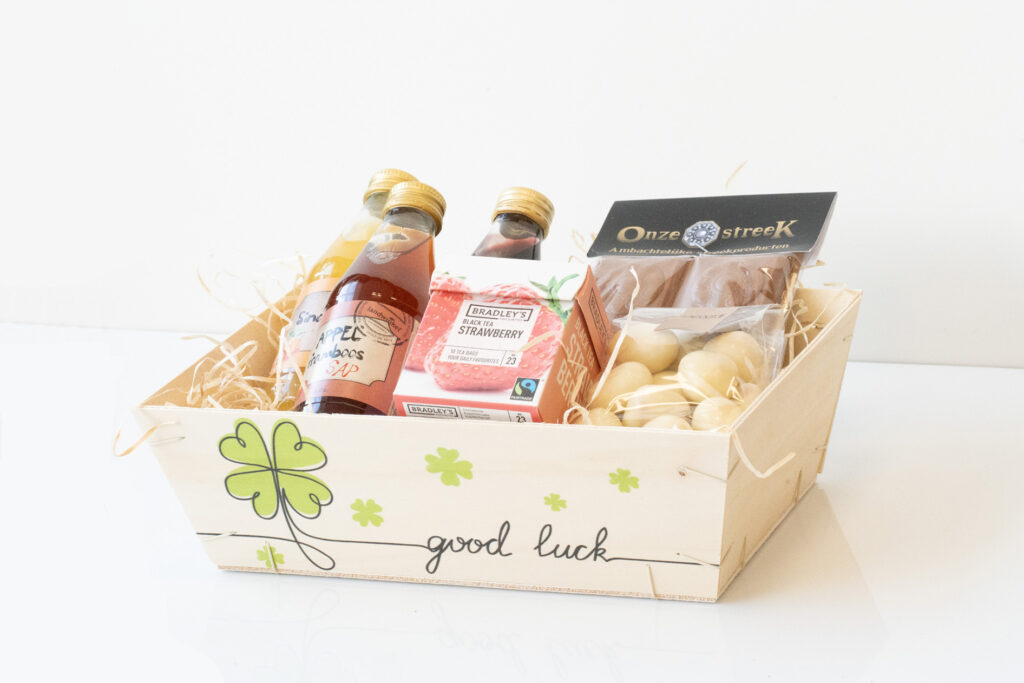 Bedrukt houten mandje – Good Luck