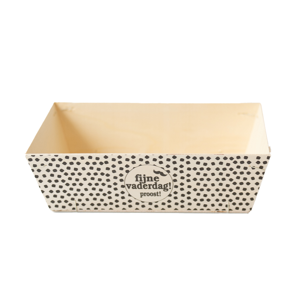 Ben je op zoek naar een leuk vaderdaggeschenk voor je vader of opa? Dan is dit vaderdagmandje iets voor jou! Vul hem bijvoorbeeld met bier, wijn, een geurtje of met heerlijke lekkernijen. Vergeet het mandje niet op te vullen met houtwol en verpak het met ons mooie, transparante inpakfolie om jouw cadeau compleet te maken. Succes gegarandeerd! Dit stevige mandje is geschikt voor een inhoud van 3kg.Plywood mandje uiterst geschikt als geschenkverpakking