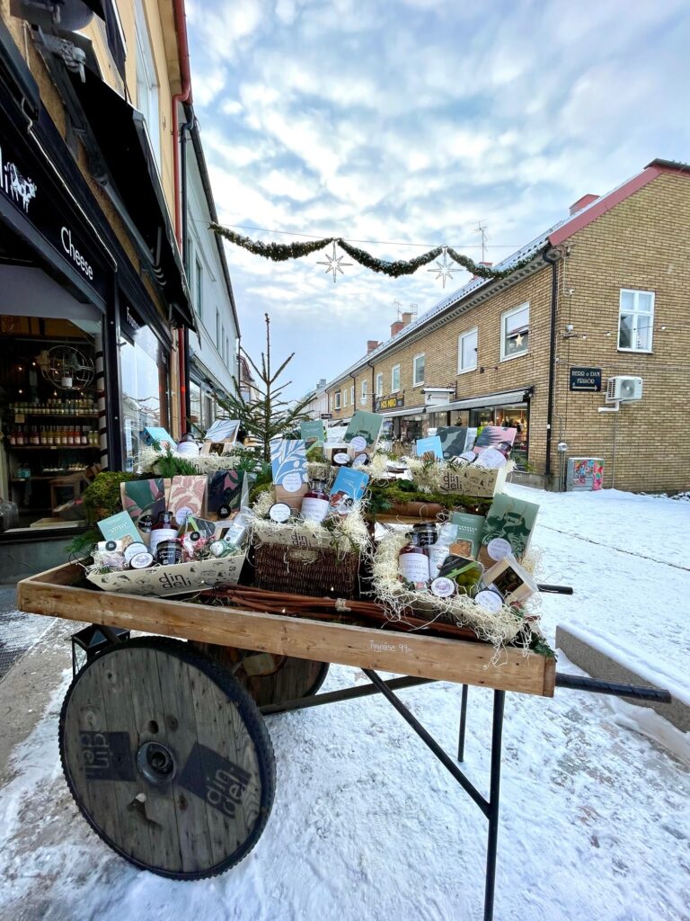 Onlangs mochten we aan de slag voor Din Deli, een gezellige delicatessenwinkel uit Zweden die bekendstaat om hun mooie producten en sfeervolle presentatie. Zij bestelden bij ons gepersonaliseerde 5KG-mandjes – ideaal om hun delicatessen op een mooie manier te verpakken en te laten zien.